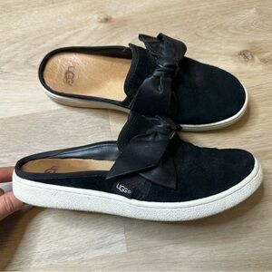 UGG Bow Black Leather and Suede Slip On Sneakers size 6.5