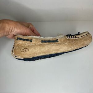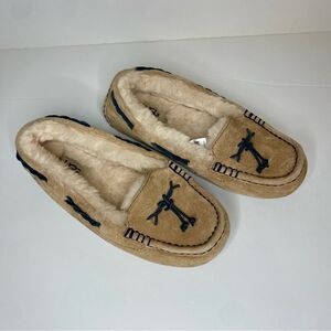 UGG Brett Slip on Moccasin Slippers Wool Lined Brown Braided Details Size 6