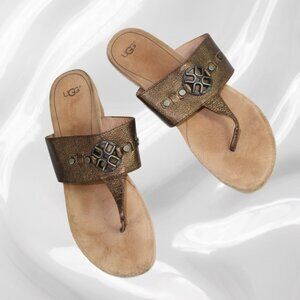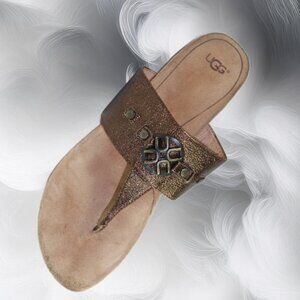 UGG Briella Pony Brown Bronze Wedge Thong Sandal, Size 10