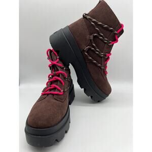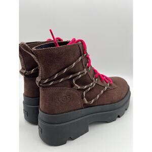 UGG Brisbane Lace Up Suede Platform Boots Burnt Cedar Women's Size 9.5