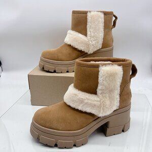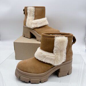 UGG Brooklyn Sunburst Platform Boots Womens US 10 Chestnut Suede $200 NEW
