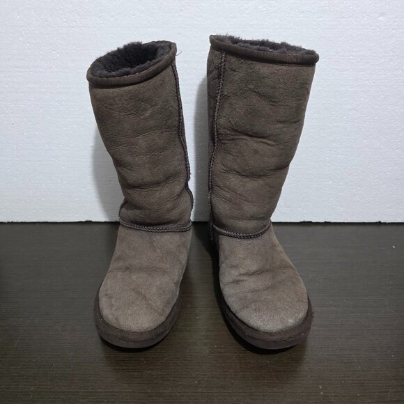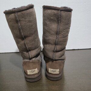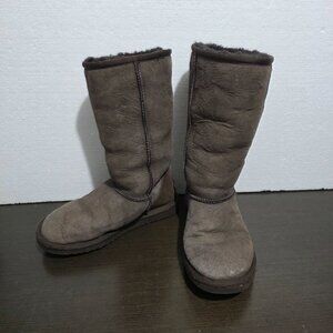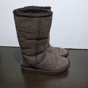 UGG Brown Genuine Leather Boot Genuine Sheepskin Lining Classic Tall 5815 Sz W5