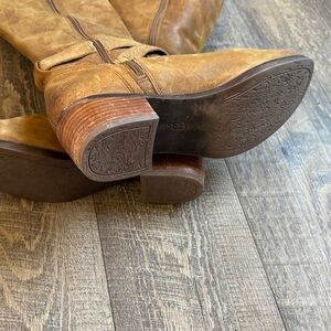Step into elegance with these UGG heeled boots in a rich brown shade. These knee-high boots boast a classic design with a low stacked heel, offering both style and comfort. Crafted with a durable sole, they are perfect for any occasion.