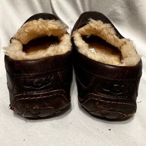 UGG Men’s Ascot Leather Slippers Size 7 Brown Sheepskin Wool Lined