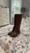Stylish brown leather knee-high boots. Perfect for any occasion. Size 8. See imperfection in photo