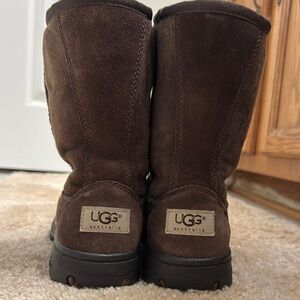 Cozy brown shearling boots by UGG. Ideal for warmth and style.