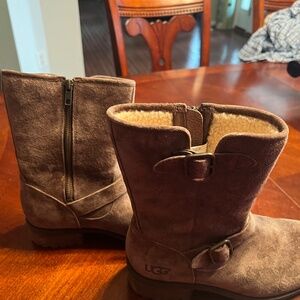 Preowned UGG Brown Side Zip Boots Size 9.5.