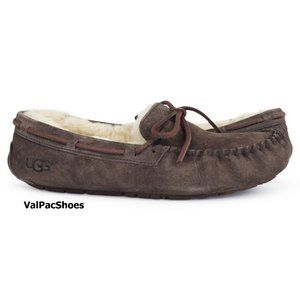 Cozy UGG slippers. Soft brown exterior. Warm cream lining. Perfect for comfort.