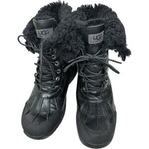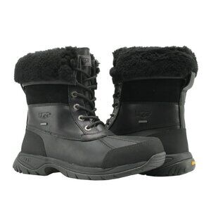 UGG Butte Black Waterproof Leather Sheepskin Winter Snow Boots Size US 10 Men