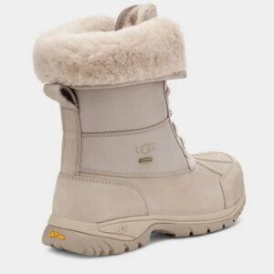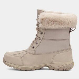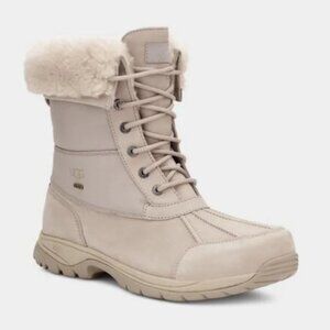 Men's UGG Butte Mono Waterproof Boots in Putty Brand New with Tags intact on bottom sole New without original box This update to our timeless Butte is rugged on the outside and cozy on the inside. Cold-weather rated to -32C (or -25.6F), it features waterproof bootie construction, cozy sherpa and UGG plush lining, and an innovative Vibram® outsole for enhanced traction on a variety of terrains. Waterproof Designed to help protect against heavy weather conditions, including water, rain, and snow. If present, zippers and tongues are gusseted and treated with water-repellent coatings. Waterproof Waterproof membrane bootie construction Gusseted tongue with water repellent coating Cuffable shaft 8mm sherpa lining on vamp, 8mm sherpa lining on quarter, 17mm UGGplush™ 80% upcycled wool, 20% lyocell lining 7mm UGGplush™ 80% upcycled wool, 20% lyocell insole EVA footbed EVA midsole Vibram® outsole Approx 8.5" shaft height Cold-weather rated to -20˚C Metal UGG® logo hardware, Woven heel label with UGG® logo Best for: Casual, Light or moderate rain, Light snow, Heavy rain, Heavy snow Customer Service Policy: We are not an expert on everything we sell, so some of our knowledge may be limited. As for shoes and clothing on manufactures overall fit Items are retail store purchases and may have been handled or tried on by store customers Prior to sending, photos are taken of item with shipping label and a zip tie tag attached to represent the item purchased and shipped