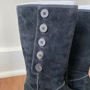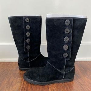 UGG Button Boots 3387 Size 6 Black Suede Signature Lining
