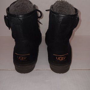 Size 7 Women's UGG CECILE Waterproof Duck Boots has rubber soles, lace up closure, side buckle, and Ugg pure wool lining In the color Black with Gray lining, has signs of wear S/N 1007999 ( Pre Owned Condition )