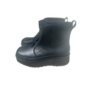 UGG CITYFUNC ZIP BLACK LEATHER PLATFORM BOOTS, WOMEN US 10.