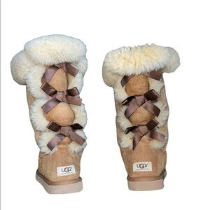 UGG CLASSIC TALL BAILEY BOW II TRIPLET WATER RESISTANT BOOTS. SIZE 8