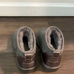 UGG CLASSIC ULTRA MINI SHINE CHARCOAL BOOTS