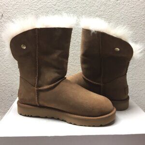 UGG CLASSIC VALENTINA CHESTNUT FULLY FUR LINED SWAROVSKI CRYSTALS RIVET Boot