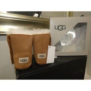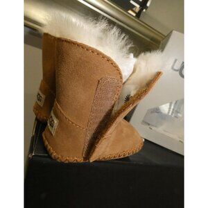 UGG Caden Baby Boots Booties Chestnut Brown Suede Sheepskin Lining Infant 0-6M