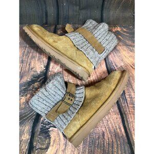 UGG Cambridge Knit Chestnut Suede Belted Boots Sheepskin Womens 9 (v4m)