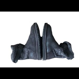 UGG Cambridge Metallic Dk. Gray Ankle Boots Suede Rib Knit Buckle Boot Size 7M. Round Toe. Fold down or Up. Worn just couple of times and in VGC. Sorry I don’t have the box.. but you will love these!!