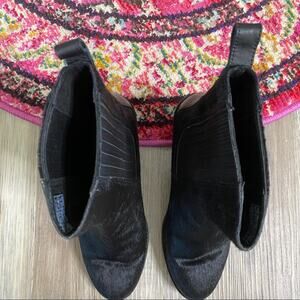 An uptown boot with downtown cool, this slim Chelsea style features textured cow hair, double goring, and a sturdy block heel.