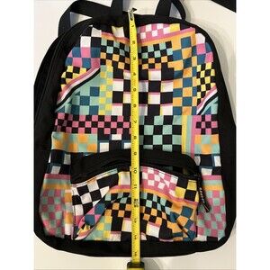 This is a pre-owned UGG canvas backpack in a multicolored checkered pattern. It is designed as a unisex adults size small backpack with a stylish exterior made of canvas material. Great used condition from a smoke free home.