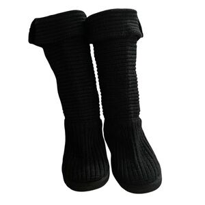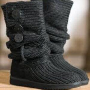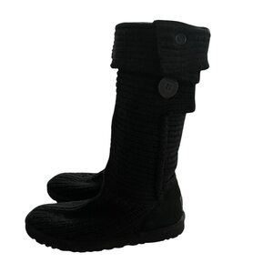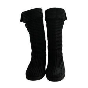 UGG Cardy Boots Black Winter Knit Boots Cozy Mid-Calf Size 9