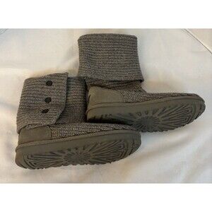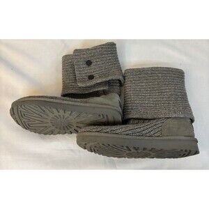 UGG Cardy Boots Classic Gray Knit Fold Over Button Women 9 Winter Sweater
