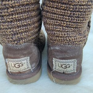 Ugg Cardy brown knit boots with button accents womens sz 5 .