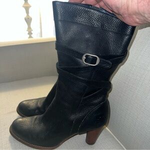 UGG Caroline High Heel Black Leather Side Zip Winter Boots Womens Sz 9M