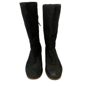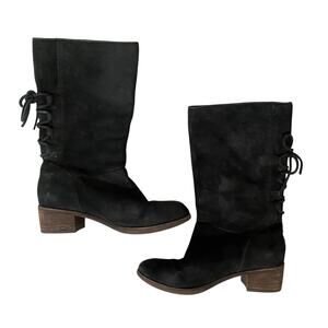 UGG Cary Black Nubuck Leather Back Lace Block Heel Mid Calf Boots 6 1005949