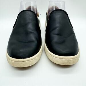 UGG Cas Black Leather Slip On Sneakers Gold Padded Heel Size 7.5 Boho Minimalist