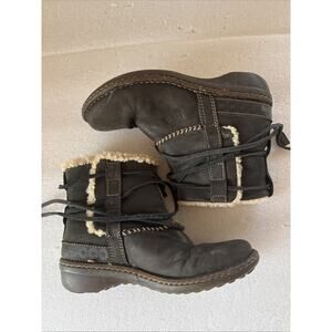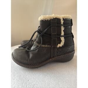 UGG Caspia 1932 Brown Leather Lace Up Ankle Sheepskin Boots Womens USA 7 UK 5