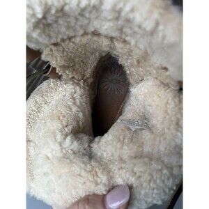 UGG Caspia 1932 Tan Leather Lace Up Ankle Sheepskin Fur Wool Flat Boots Wmn Sz 7