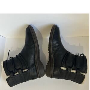UGG Caspia Boot Black Leather Sheepskin Inside Rubber Soles