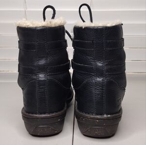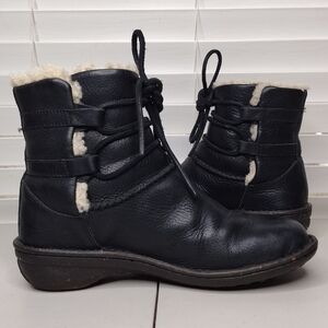 UGG Caspia Black Leather Faux Fur Low Heel Lace Up Winter Boots Sz 7