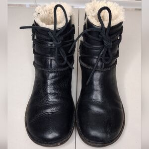 UGG Caspia black leather faux fur low heel lace up winter boots Sz 7.
