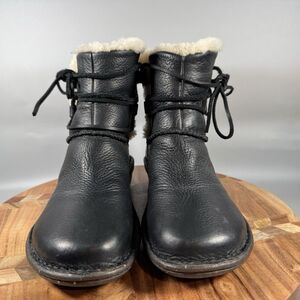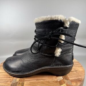 UGG Caspia Boots Black Leather Lace-up Shearling Lined Style 1932 Sz 8 Booties