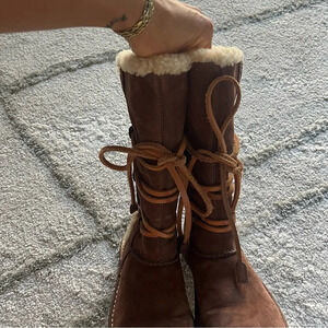 UGG Catalina Brown tall suede Leather Sheepskin Boots Shoes lace up