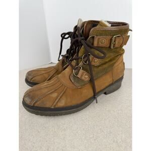 UGG Cecile Brown Waterproof Leather Ankle Duck Boots 1007999 Fur Felt Lined 7.5