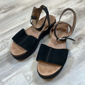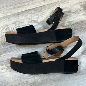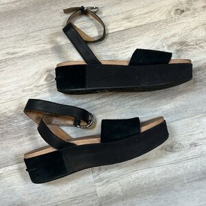 UGG Black Platform Ankle Strap Buckle Sandals, Size 9.