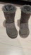 Cozy UGG boots with plush charcoal fur. Features stylish ribbon details on the back.