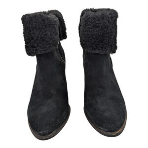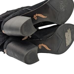 UGG Charlee Ankle Boot SZ 10 Black Suede Shearling Lined Stack Heel Winter Cozy