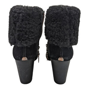 UGG Charlee Ankle Boot Size 10 Black Suede Shearling Lined Stack Heel Winter Cozy