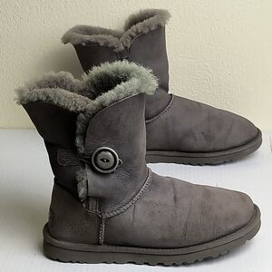 * UGG Charming Bailey Button Gray Winter Rain Boots Mid-Calf Suede Women's Size 6