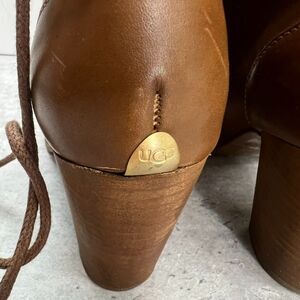 UGG Chestnut Analise Exposed Fur Leather Stacked Heel Ankle Boots Womens 7.5