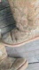 Snakeskin print on leather in multiple tones of brown and tan. Mocha bows at the back. Sheepskin lining. Size 8. Pre-owned with general signs of wear highlighted in photos and video.