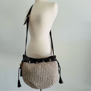 UGG Chunky Knit Leather Trimmed Bag Wool Blend