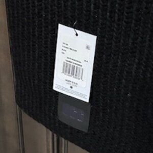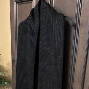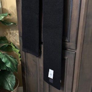Color: Black. Rib-Knit detail. Leather patch. Approx. dimensions: 8.5" W X 78" L. Material: 78% acrylic, 17% nylon & 5% Wool. Hand wash. Imported. NEW with tags on.