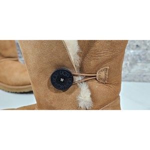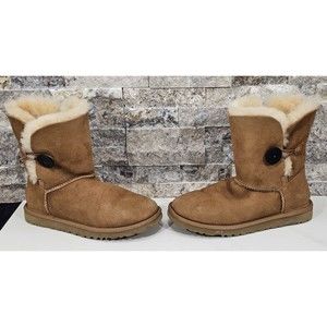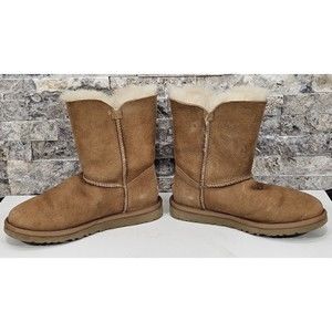 UGG Classic Bailey Button Boots in Chestnut Leather Sheepskin Womens 6 Warm Cozy