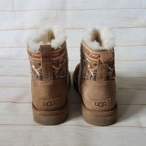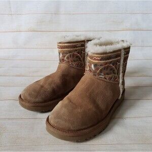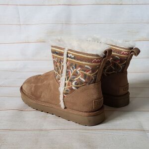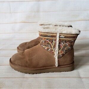 UGG Classic Beauty Mini Suede Embroidered Sheepskin Wool Winter Ankle Boot Bootie Size 9
